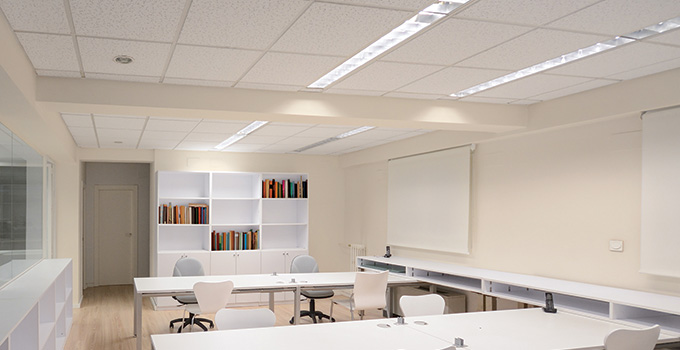 CGC Mars™ ceiling panels offer a smooth, monolithic look for a modern appearance. With the highest light reflectance of any of the CGC product line, CGC Mars panels help brighten a room while reducing energy costs. If noise levels are a concern for your client, these panels also absorb 75 per cent of sound in a room.