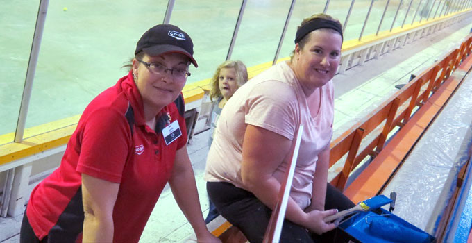 Of the three arenas, the Coronach Sportsplex saw the biggest transformation. With about 20 volunteers pitching in, the bleachers were refreshed from a faded orange – originally sourced from a nearby power plant’s leftover paint decades earlier – to a brilliantly bright shade of blue. As well, hand railings and floorboards received renewed treatments of black, grey and white.