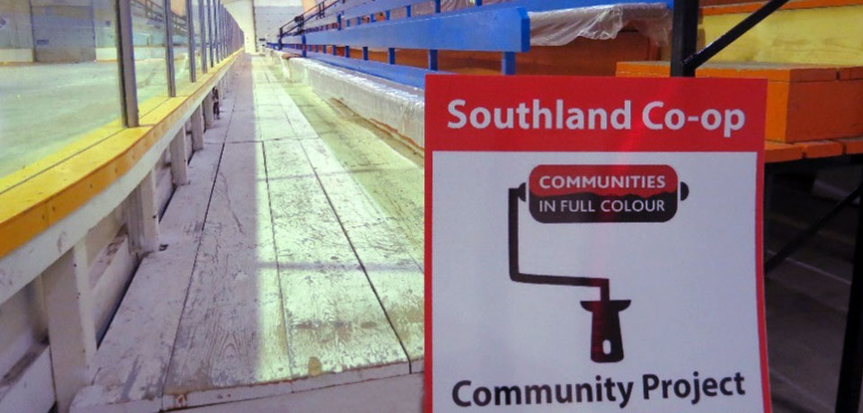 Through Co-op’s Communities in Full Colour Program – a philanthropic initiative that donates CO-OP® IMAGINE paint to non-profit projects – Southland Co-op was able to brighten up the local rinks in its trading area as well as five other structures, including a museum, park gazebo, curling rink, seniors’ drop-in centre and golf course clubhouse. In total, Southland Co-op donated more than 1,250 gallons of paint.