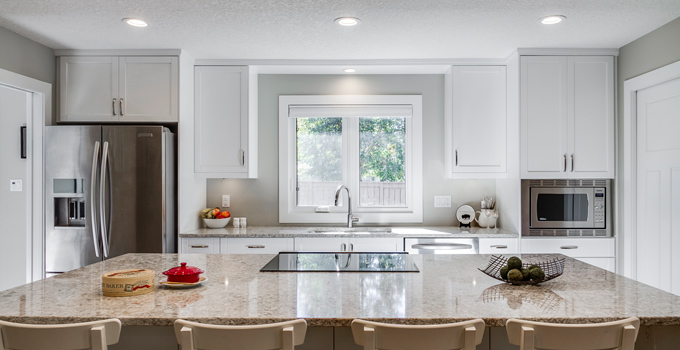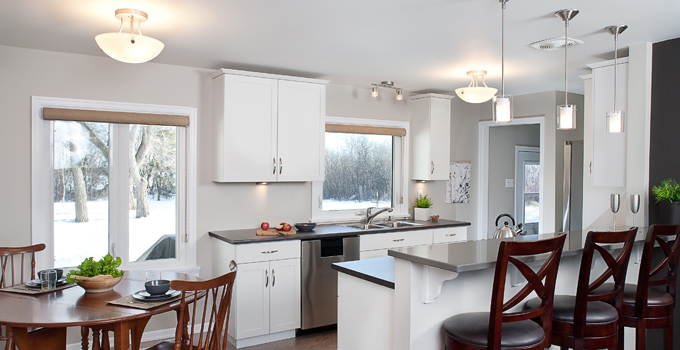 Islands are an amazing multipurpose space in any kitchen. There are a couple of lighting options for kitchen islands: you can install pot lights directly over the island (which can be incorporated into the entire kitchen’s pot light grid); or you can place pendent lights over the island for function and aesthetics. To decide which is best for you, determine if pendants would hinder any view you want showcased. Generally you want the base of a pendant light to be at least six feet above the floor so most people can see under them.