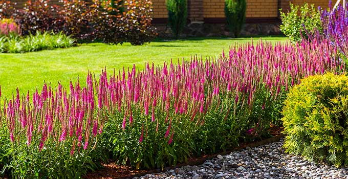Natural stone is one of the most versatile elements available for a landscape makeover. The rocks you choose will help set the tone for the rest of your landscape by adding texture, contrast and overall beauty. Pale-coloured stones provide striking contrast to deep-coloured foliage and help brighten the shady corners of your landscape. Rocks are also very useful as mulch. Typically, rocks are used in perennial flowerbeds or other perennial plantings. Keep in mind that dark stones and rocks absorb more heat than white or light-coloured stones – the more heat that is absorbed, the larger the potential for microclimate areas. Dark pumice rock is very lightweight and a deep red colour that is often used in flowerbeds, as it pairs beautifully with colourful plants and has the great ability to retain moisture.