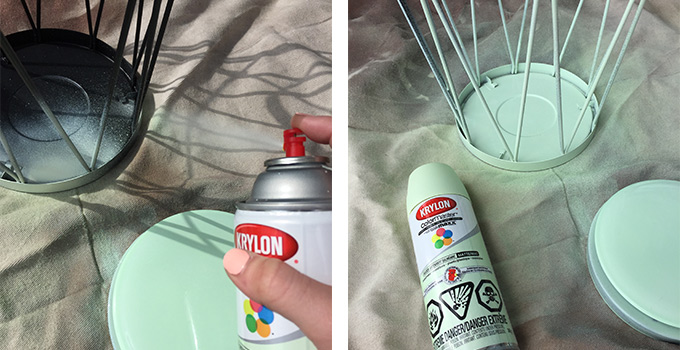 Shake the can of spray paint for at least one to two minutes before spraying to ensure the paint is evenly distributed. In a well-ventilated area and overtop a drop cloth, spray the lantern in smooth, even strokes with slight overlap. Apply additional coats as needed.