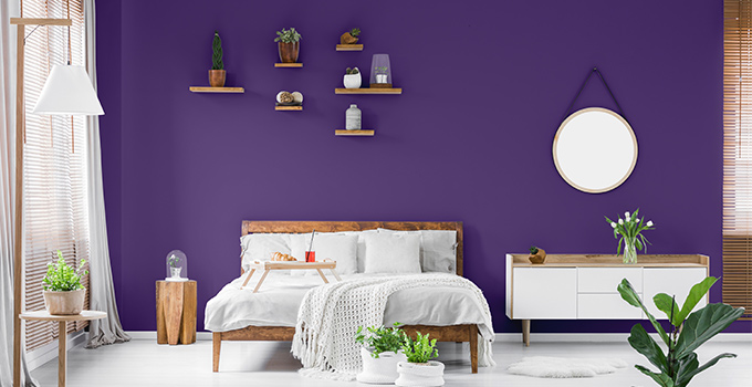 Pro Design Tips: Ground this loud and energizing colour with neutral-toned accessories and light wood to help offset the vibrancy. Pair a sumptuous purple feature wall with natural woods and crisp white sheets to create the bedroom of your wildest dreams.
