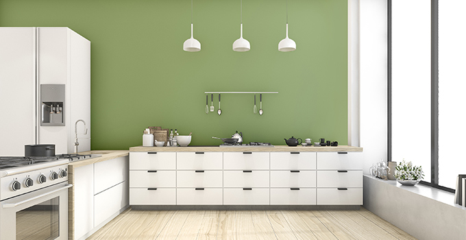 Pro Design Tips: With its fresh, earthy hue, try it in a bright kitchen to evoke a clean and healthy space. Use silver accents in your accessories and flatware to make this bright shade really sing.
